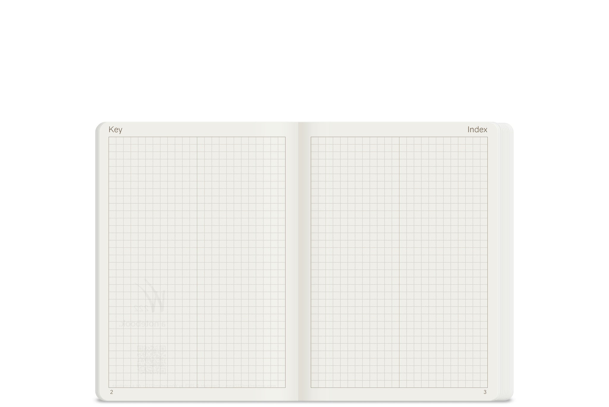 Wonderland 222 2026 A5 grid notebook with wonderland 222 ultra light weight fountain pen friendly paper open to the key and index