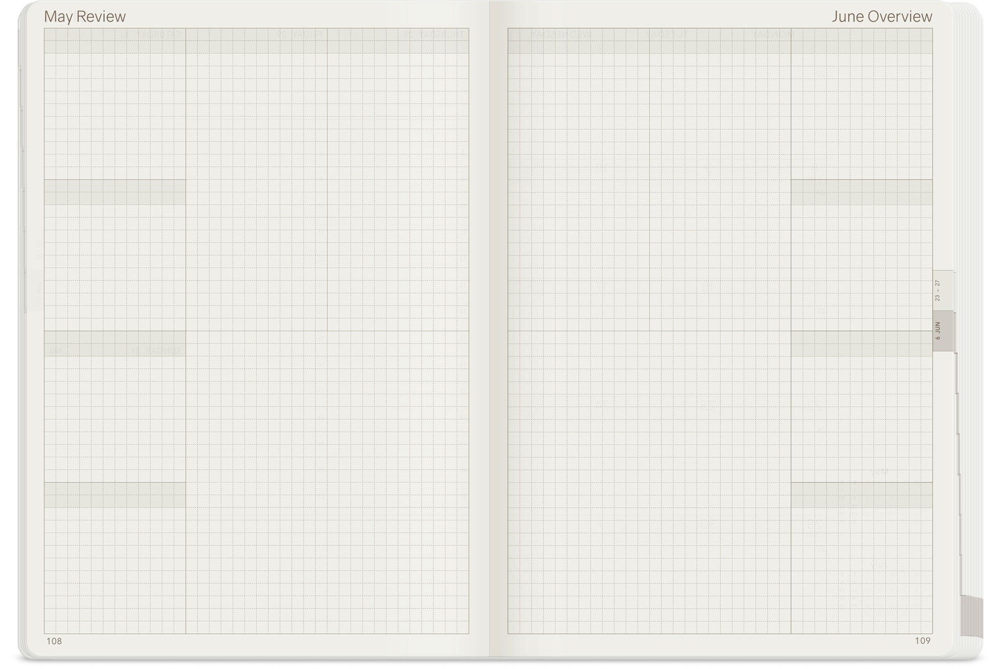 - Monthly Overview and Review Pages: Keep track of your monthly progress and reflections.