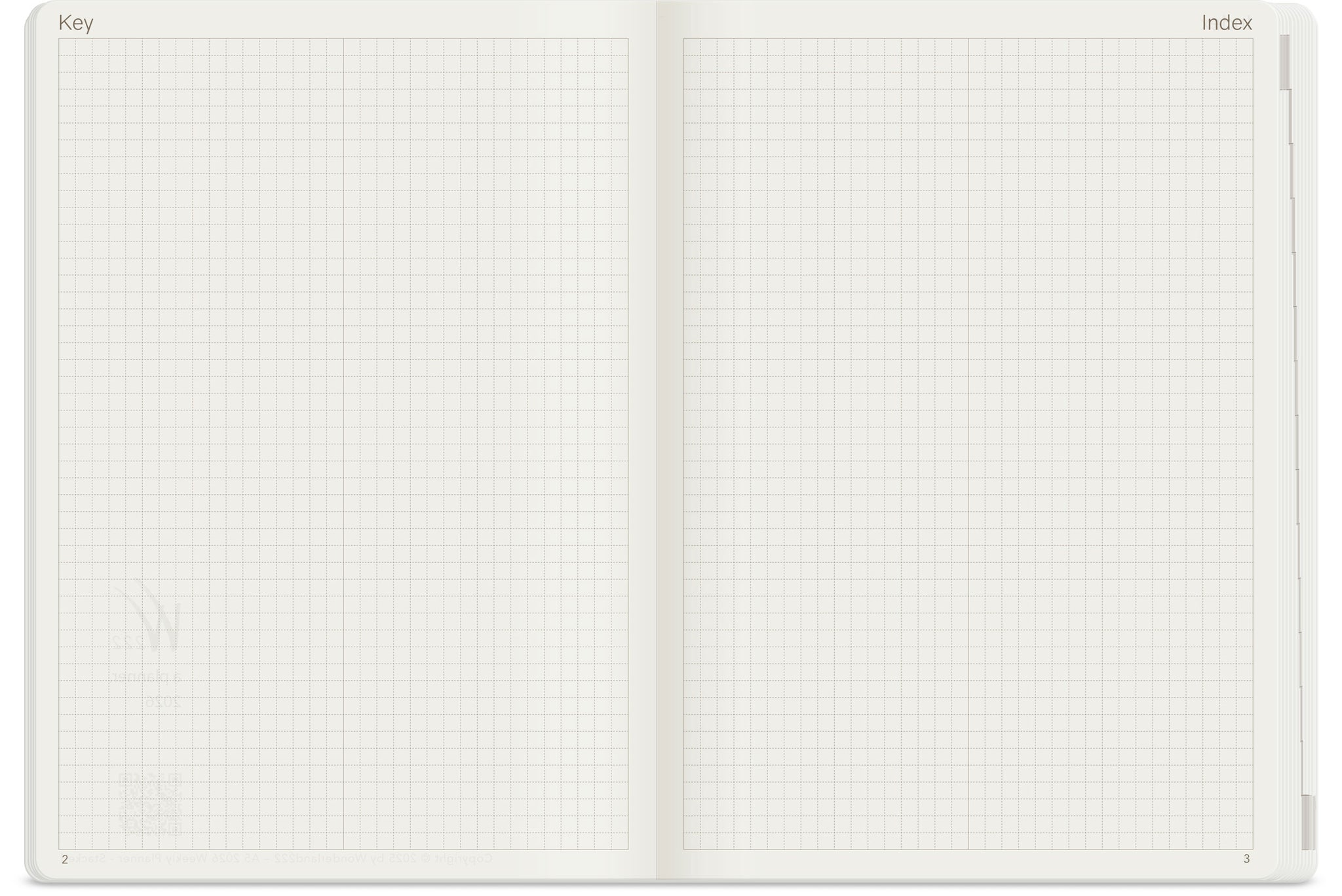 - Key and Index Pages: Numbered for hybrid bullet journaling.