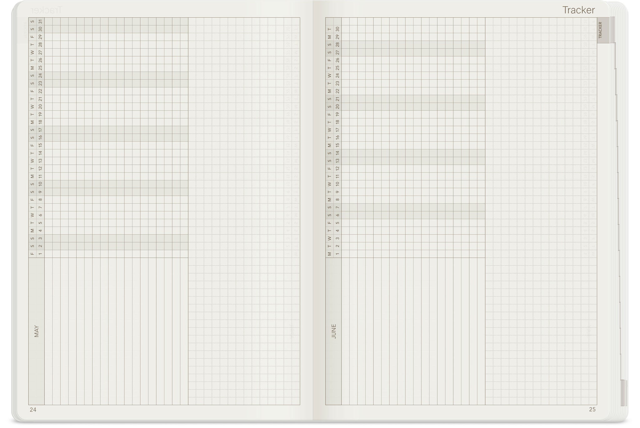 - Routine/Project Tracker: Monthly matrix and note section layout for comprehensive tracking.